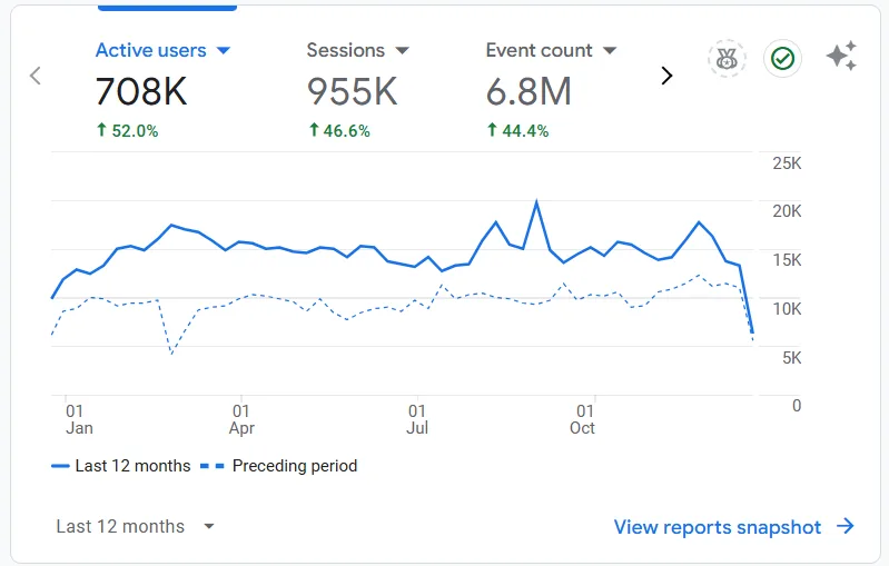 Over the past year, our digital marketing efforts have led to a 52% increase in active users, a 46.6% rise in sessions, and a 44.4% boost in event interactions. This reflects consistent improvements in website traffic and user engagement, demonstrating the effectiveness of our strategy.